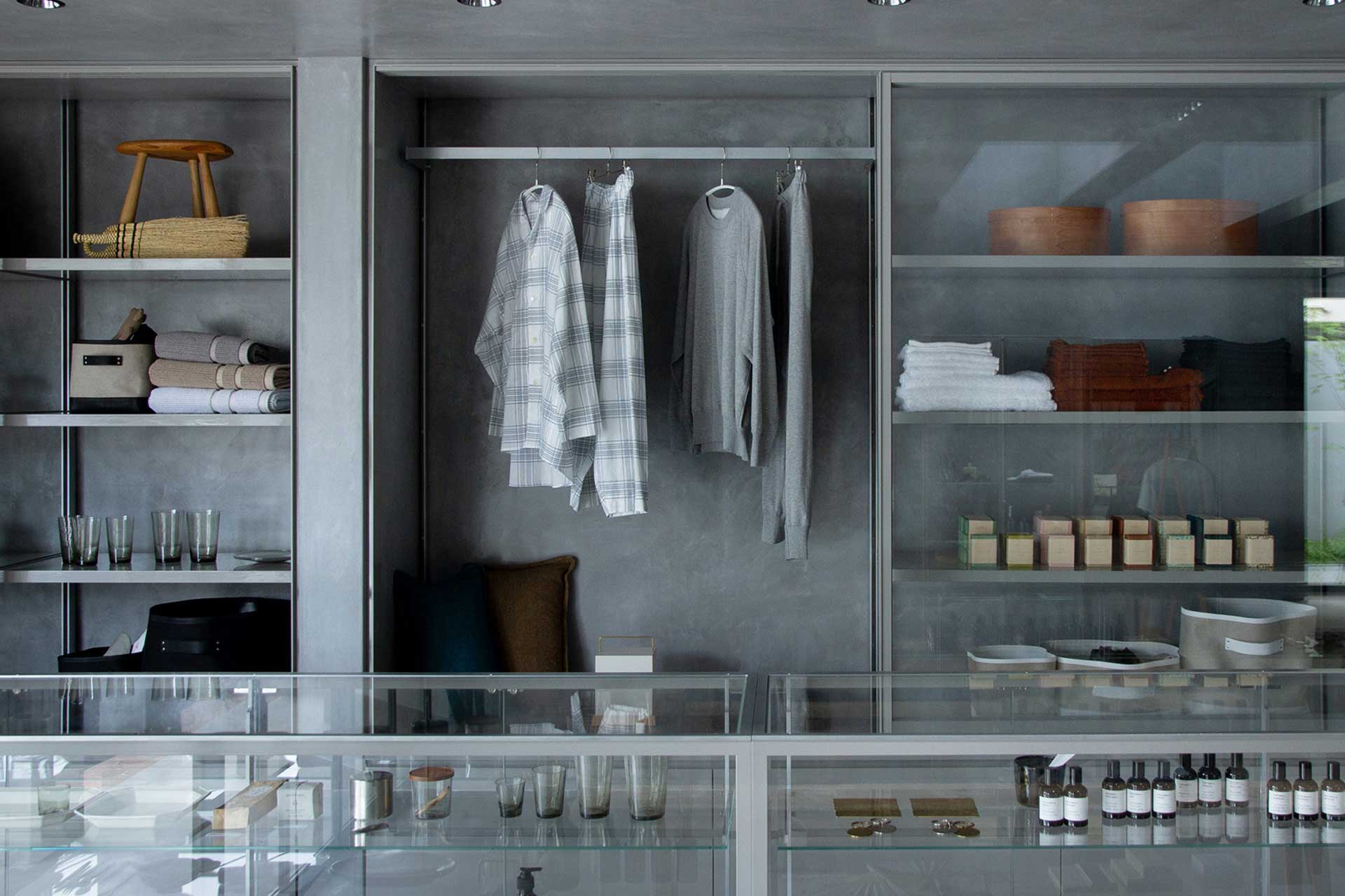セレクトショップ兼ブランドの<ARTS&SCIENCE>。2023年にオープンした材木座店の1階には、タオルや石鹸、パジャマなどのホームウエアをはじめ、ガラスや木工作家による手仕事のプロダクトが並んでいます。2階は、鎌倉をはじめ各地から届く旬の食材を使った軽食や菓子、ナチュラルワインが楽しめる<2ND FLOOR>を併設。かつて90年にわたり地域に根ざした日用品店兼調剤薬局あったこの場所で「自分たちが思う日常の必需品」を提案しています。