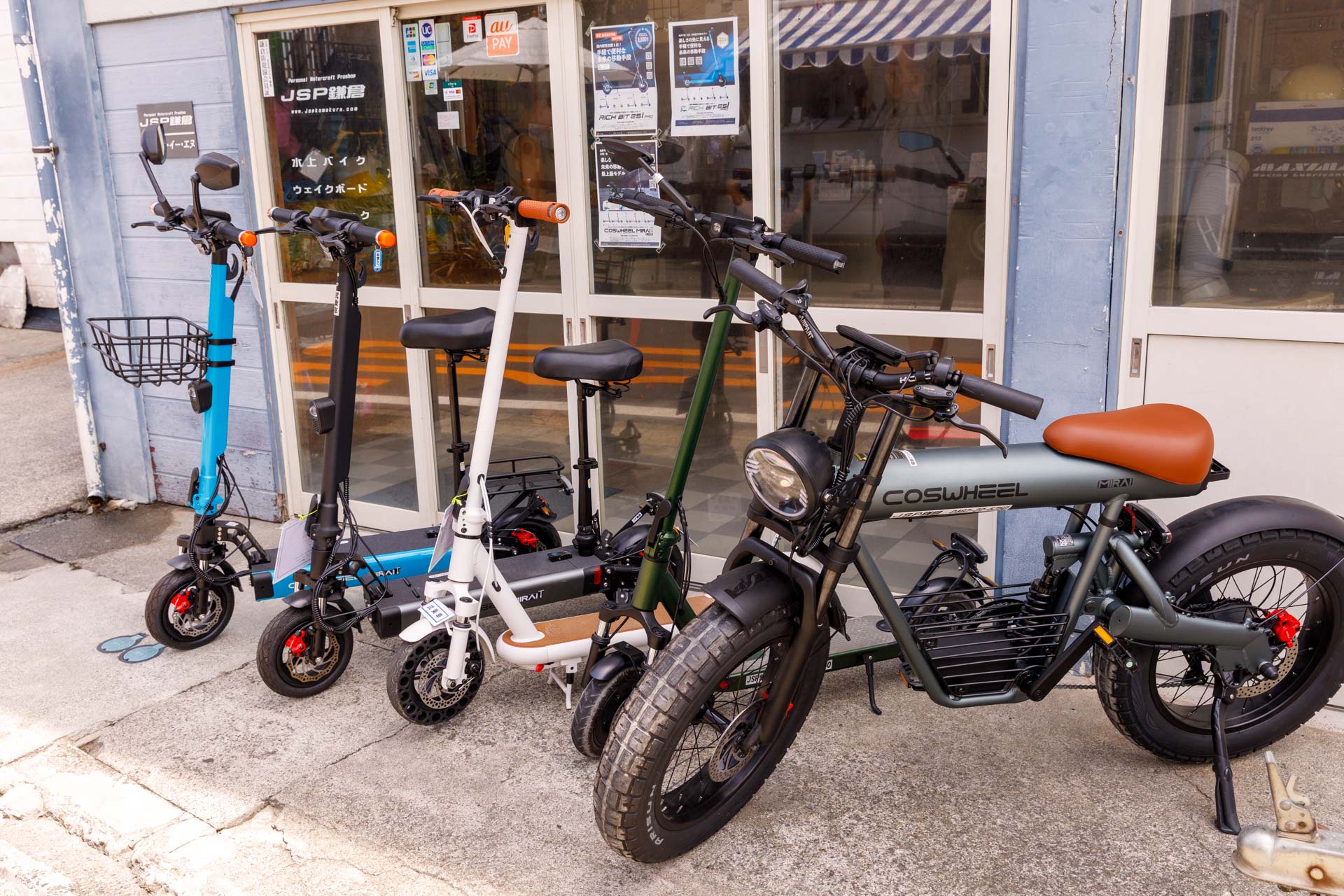 海を颯爽と駆け抜けるPWC(水上オートバイ)のことならJ S P 鎌倉におまかせください。購入や修理はもちろん、会員制のレンタルや保管サービスも行っています。さらに、2024年からは電動キックボードの取り扱いもスタート。16歳以上なら免許不要で乗ることができ、どの車種も簡単に折りたたんでコンパクトに収納可能です。「車に積んで、お出かけ先での移動に使うのもおすすめですよ」と飯野源太郎さん。約7万円から購入できるモデルもあるので、ぜひ実際に見て、触れて、試してみてください。